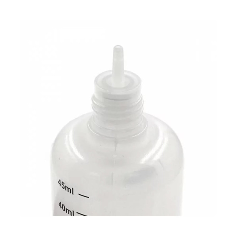 Vendu à l’unité. Bouteille graduée – MX Lab, en plastique PE, disponible en 25 ml, 45 ml ou 95 ml, avec embout fin et bouchon sécurisé.