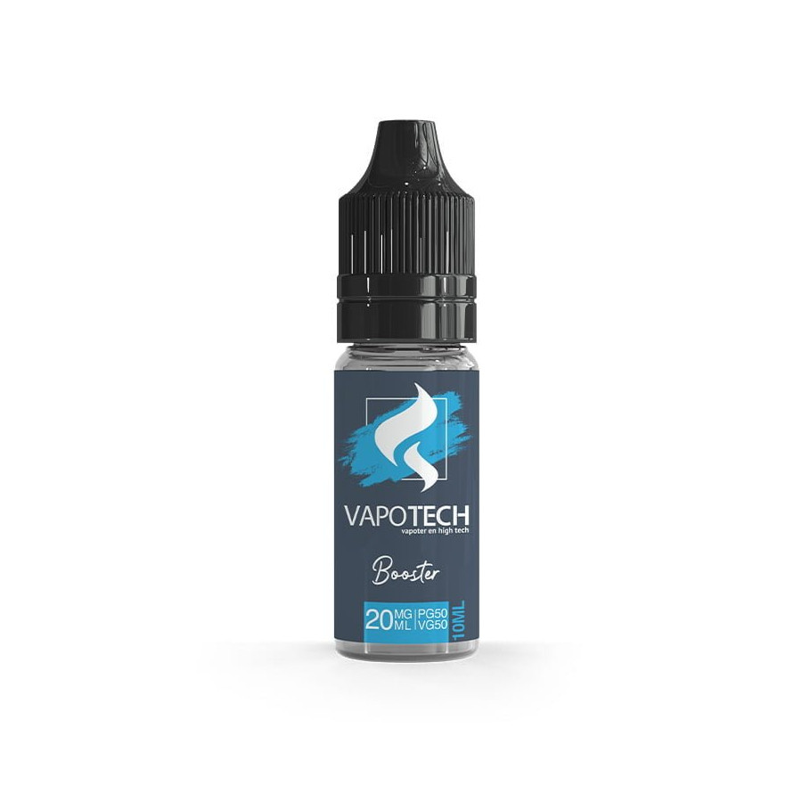 Vendu à l’unité. Flacon de 10 ml Booster 50/50 20 mg – Vapotech, base PG/VG 50/50, nicotine 20 mg/ml, flacon PET avec embout fin et sécurité enfant.