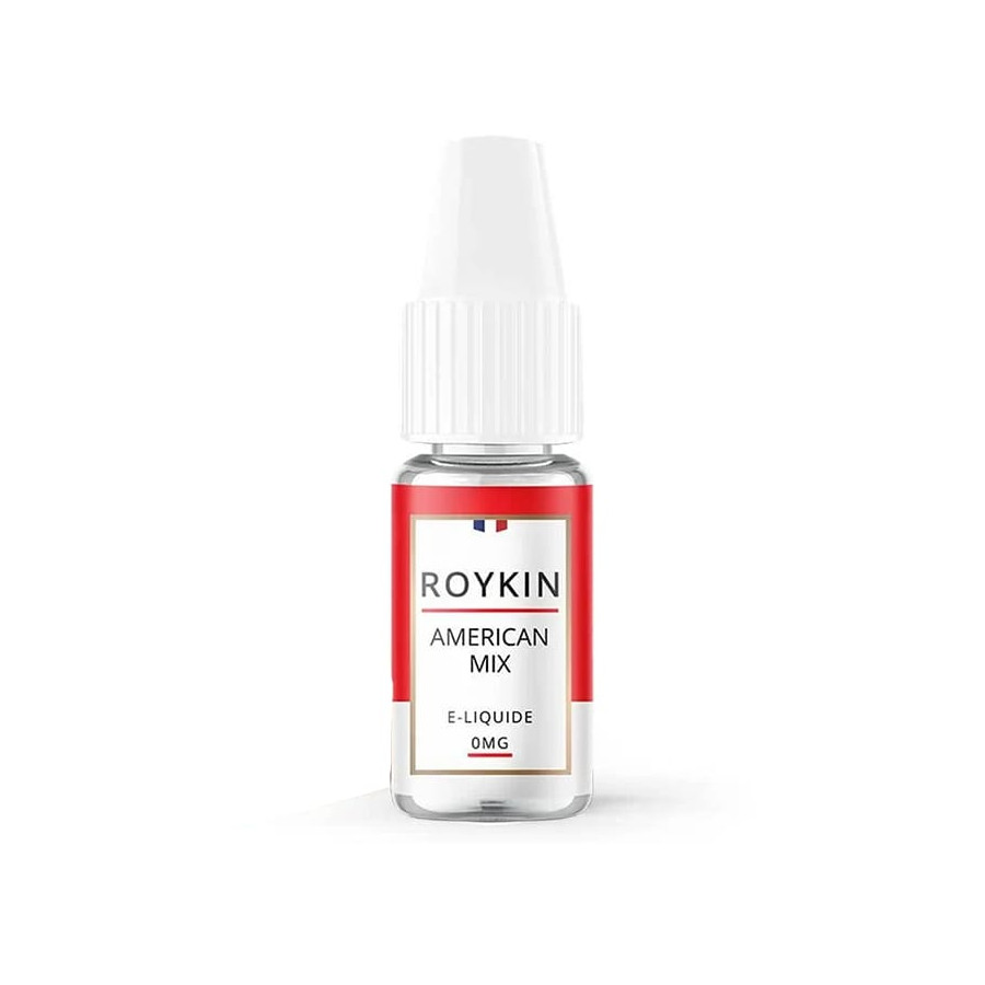 Flacon de 10 ml de e-liquide American Mix – Roykin, base PG/VG 80/20, disponible en 0, 3, 6, 11 ou 16 mg/ml, flacon PET avec embout fin et sécurité enfant.
