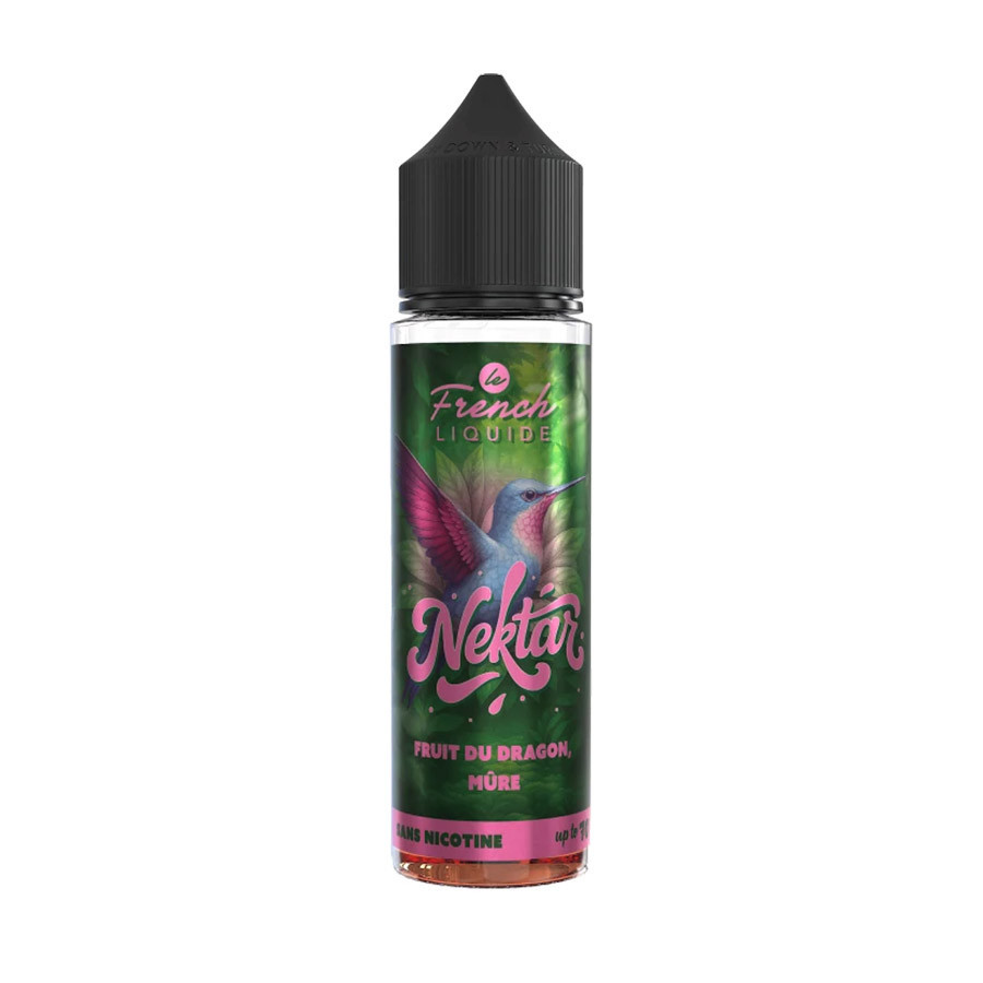 Fruit du Dragon Mûre est un e-liquide fruité de la gamme Nektar, élaboré par Le French Liquide. Conditionné en format shortfill, il contient 50 ml de liquide sans nicotine dans un flacon de 70 ml, laissant l’espace nécessaire pour l’ajout éventuel de boosters. Il est destiné aux vapoteurs adultes utilisant un matériel compatible avec les e-liquides en ratio PG/VG 50/50.