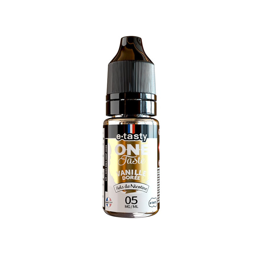 Vanille Dorée est un e-liquide aux sels de nicotine de la gamme One Taste, développé par la marque E-Tasty et fabriqué en France. Il est destiné à une utilisation directe sur des dispositifs compatibles avec les sels de nicotine. Sa construction aromatique s’inscrit dans un profil dessert, centré sur une vanille, avec une formulation équilibrée adaptée à une vape en inhalation indirecte.
