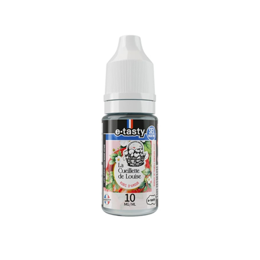Vendu à l’unité. Flacon de 10 ml d’e-liquide Rubis d’Amour – La Cueillette de Louise – E-Tasty, base PG/VG 50/50, aux sels de nicotine, disponible en 10 mg/ml ou 20 mg/ml, flacon PET avec embout fin et sécurité enfant.