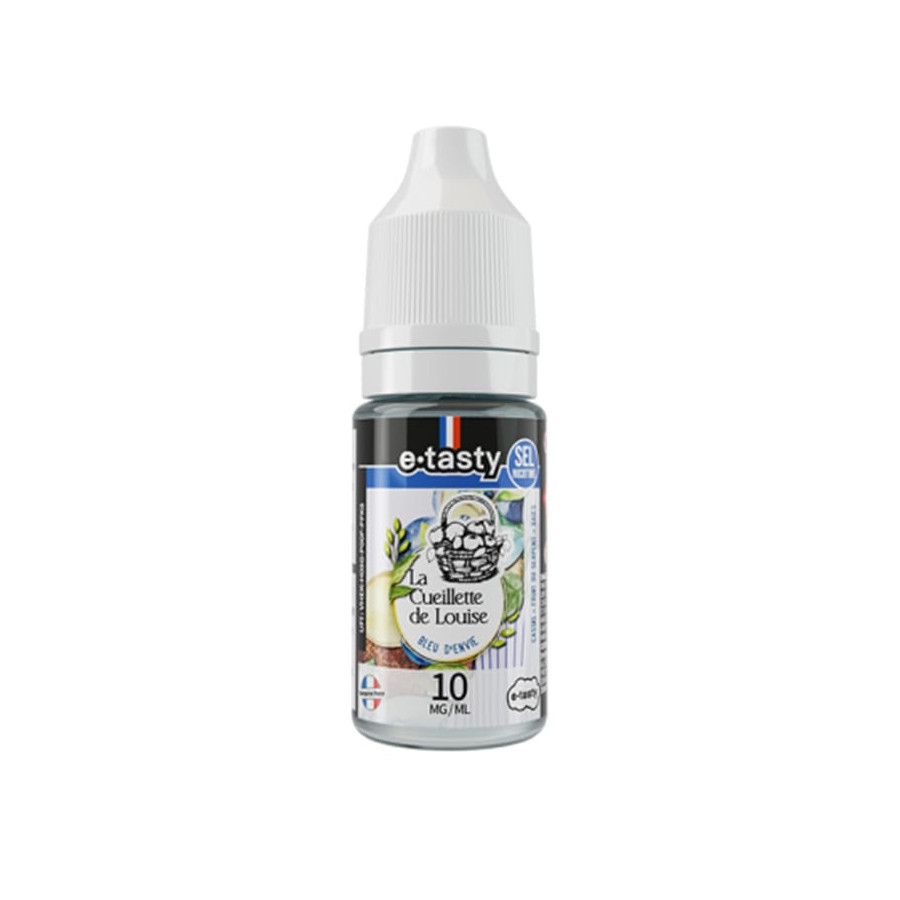 Vendu à l’unité. Flacon d’e-liquide Bleu d’envie – La Cueillette de Louise – E-Tasty, base PG/VG 50/50, aux sels de nicotine, disponible en 10 mg/ml ou 20 mg/ml, flacon PET avec embout fin et sécurité enfant.